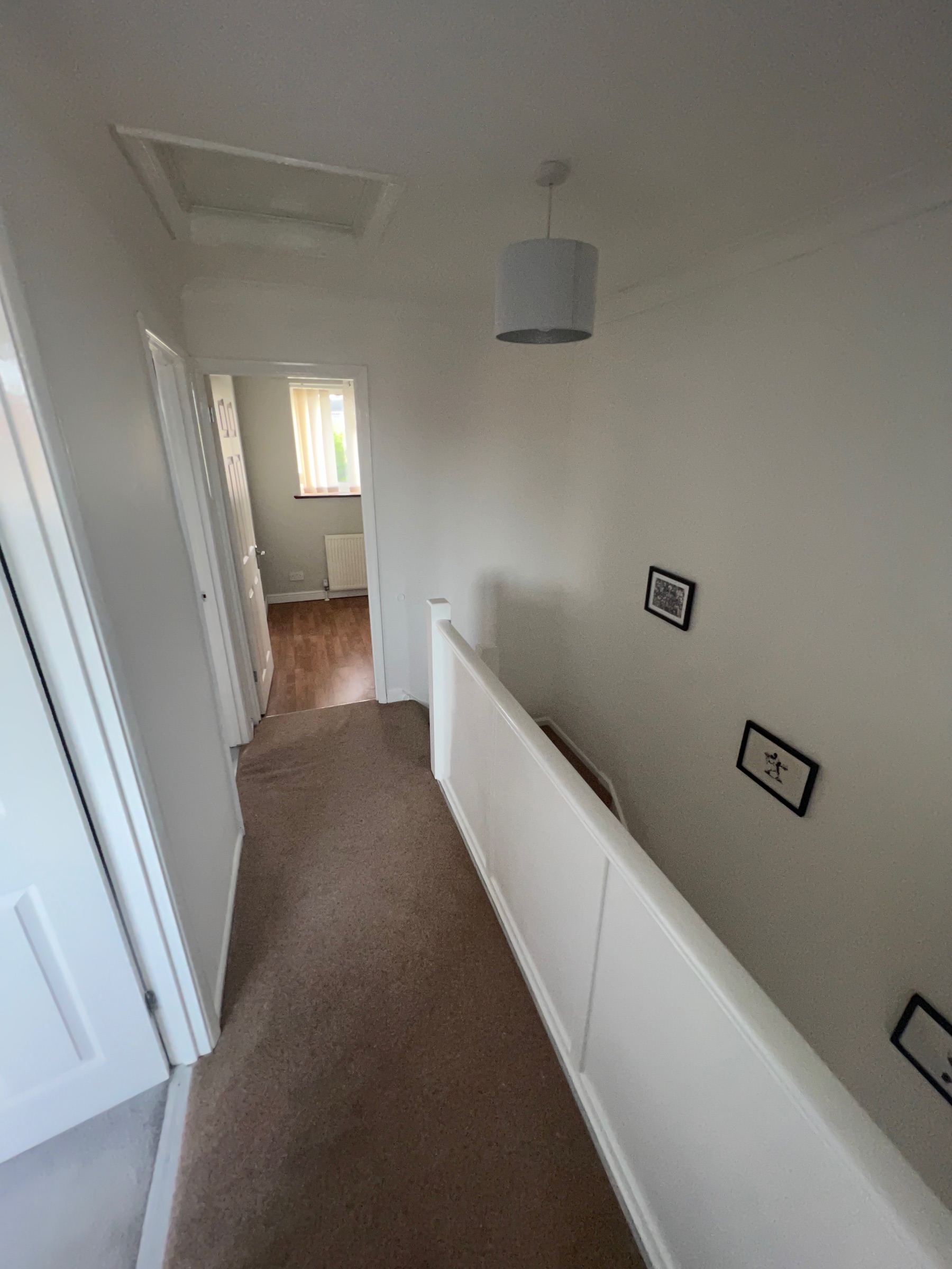 Upstairs: three bedrooms, two with built-in wardrobes